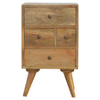 The beautifully designed Classic Oak-ish Bedside Table is constructed from 100% solid mango wood and has fine, smooth oak-ish finish. Endlessly versatile, this bedside table makes a perfect stand for nibbles, drinks or a lamp. Useful storage space is available with 4 drawers and a decent sized top. Other features include Nordic style legs and shiny knobs for the drawers.