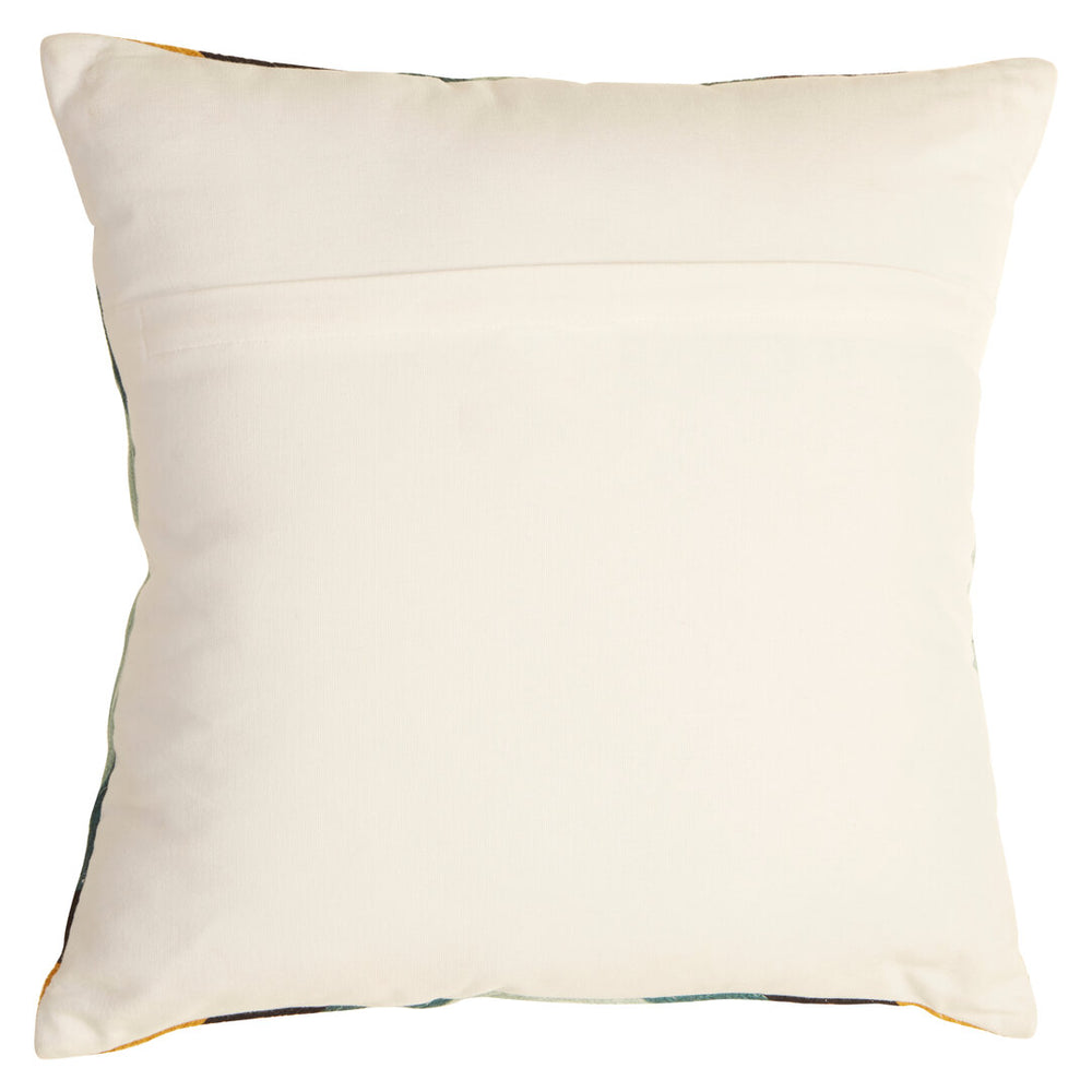 The Nuvia Elora Hexagonal Design Embroidered Cushion cover is made from soft cotton fabric and is patterned by a series of embroidered lines. Green, black, white, yellow and pink combine to create a colourful array that catches the eye.