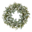 A winter wonderland masterpiece that combines the delicate textures of lamb's ear foliage with graceful wax flowers, creating an enchanting circular display that radiates seasonal charm. The natural-looking elements merge seamlessly to produce a wreath that appears freshly gathered from a frost-kissed garden, yet maintains its beauty throughout the season.