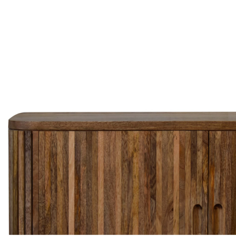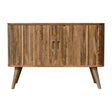 The Mokka Sideboard combines elegant design with practical storage, crafted from 100% solid mango wood. Its unique mixed wood pattern and Nordic-style legs add a minimalist touch, fitting both modern and traditional interiors. Featuring two cut-out handles, it offers easy access to ample storage space for your essentials. Finished smoothly for durability and easy cleaning, this eco-friendly piece supports sustainable practices and arrives fully assembled for your convenience. The Mokka Sideboard enhances any room with timeless style and reliable function.
