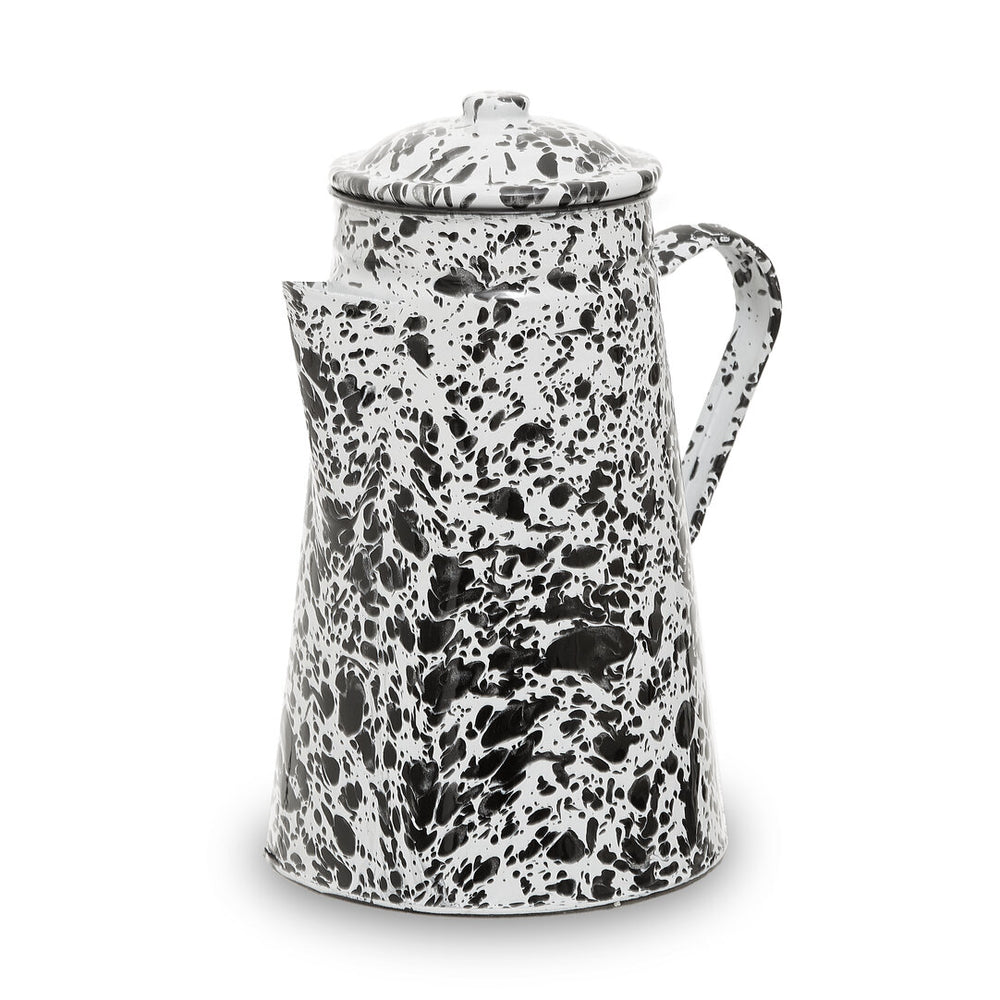 The Vara teapot is made from enamelled carbon steel and finished in a black and white pattern. Ideal for serving tea or coffee, it has a wide curved handle which provides a firm hold while pouring hot drinks to the mugs. Its elegantly tapered design is complemented with the pointed spout giving it an aesthetically pleasing look.