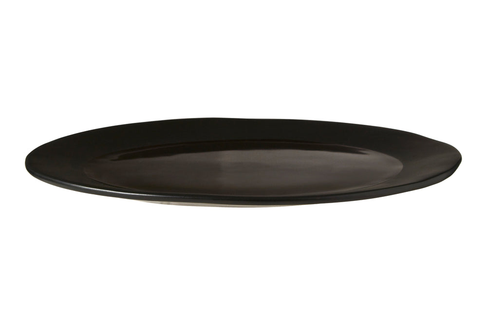 This pizza plate is made from strong stoneware, boasts a wide rim and a features a shallow, recessed centre. It has a sleek look, with the two black tones creating just a subtle hint of visual difference. The uneven rim adds to the visual interest. Coordinate it with a side plate from the Vara range.