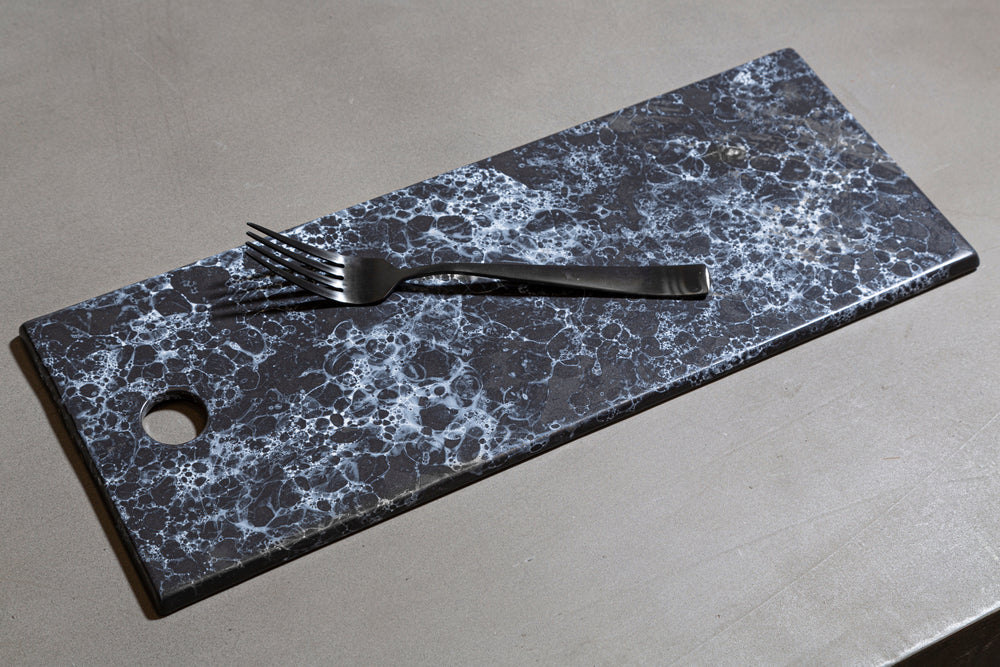 This serving platter has a rectangular design with a round hanging hole for easy storage and accessibility when needed. A chic white marble effect forms twists and swirls across the surface to give it a subtle pattern. Made from durable stoneware, style it with plates and bowls from the Scandinavian-inspired Vara collection.