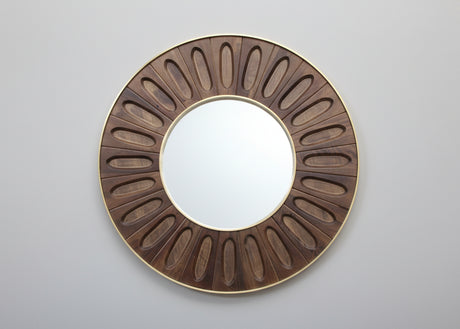 Minda Oval Tile Brass Edged Wooden Round Mirror