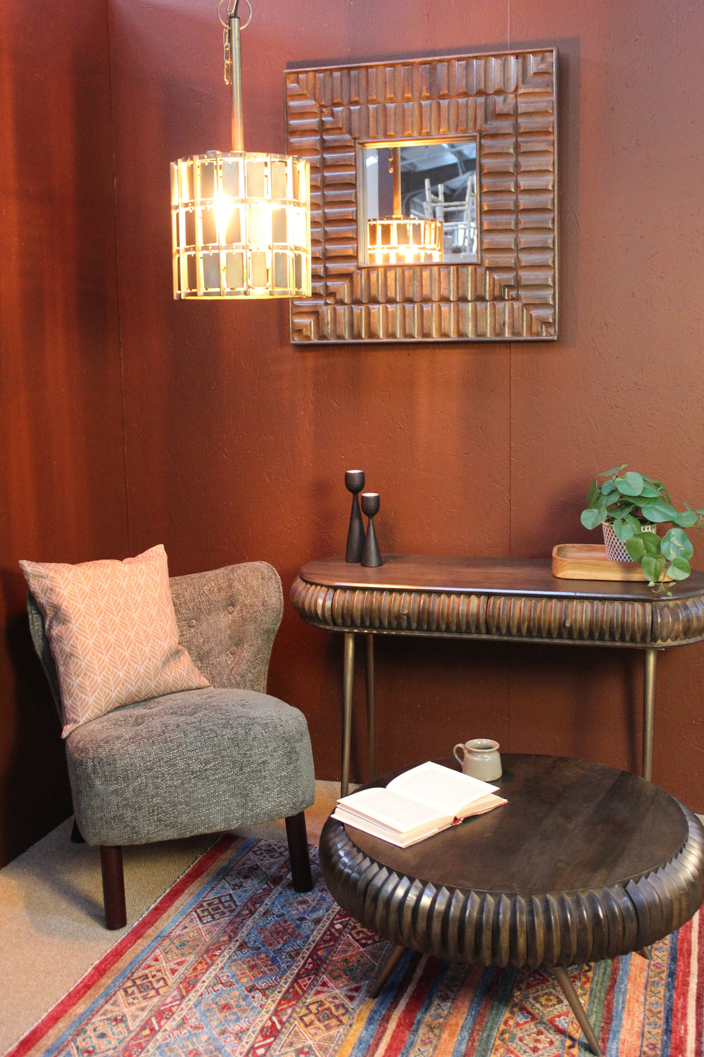 Crafted from solid mango wood, the Sarana Mirror features a square frame accented with carved tile-style detailing. Its balanced form and subtle texture make it a versatile wall piece—ideal for adding depth and warmth to any room.