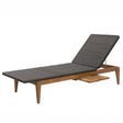 The Gustav Sunbed combines plantation teak with a slate-coloured synthetic rope weave, expertly handwoven to provide exceptional support for lounging. Designed for ultimate comfort, its fully adjustable backrest allows for personalized reclining positions. A discreet sliding tray, accessible from either side, serves as a convenient side table. When paired, these trays align to form a shared surface complete with a parasol hole, enhancing both functionality and style.