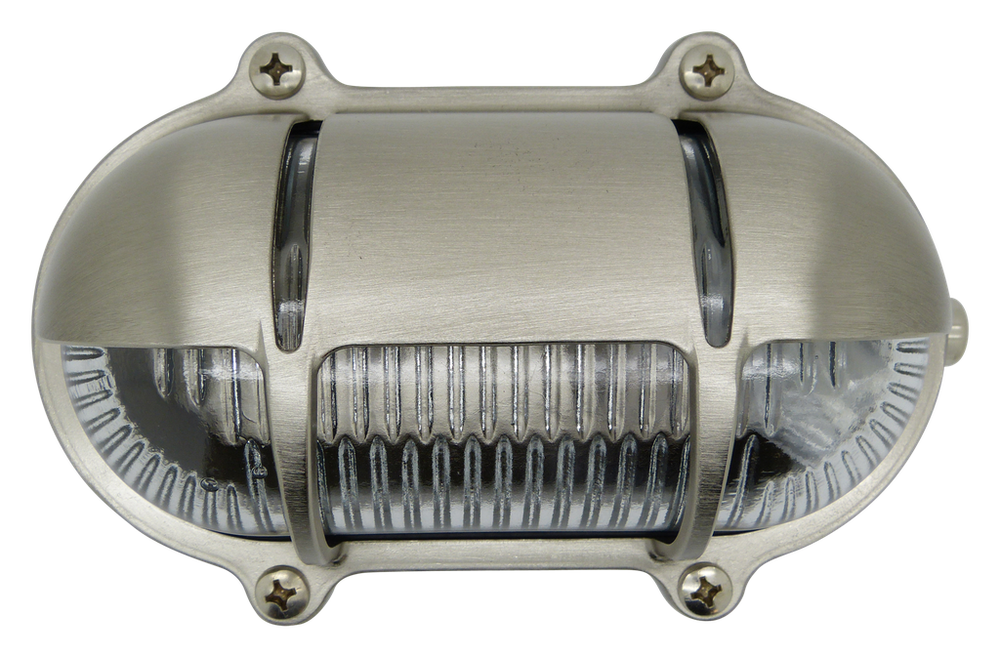 The Palaemon North is an oval eyelid bulkhead outdoor light with decorative uplight slits. With its north facing illumination outlets, these solid brass eyelid fittings offer tradition along with functionality. Robustly designed and built, these fittings will outlast contemporary lighting.