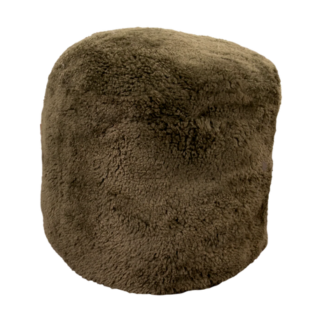 Khaki Green Short Pile Sheepskin Pouf