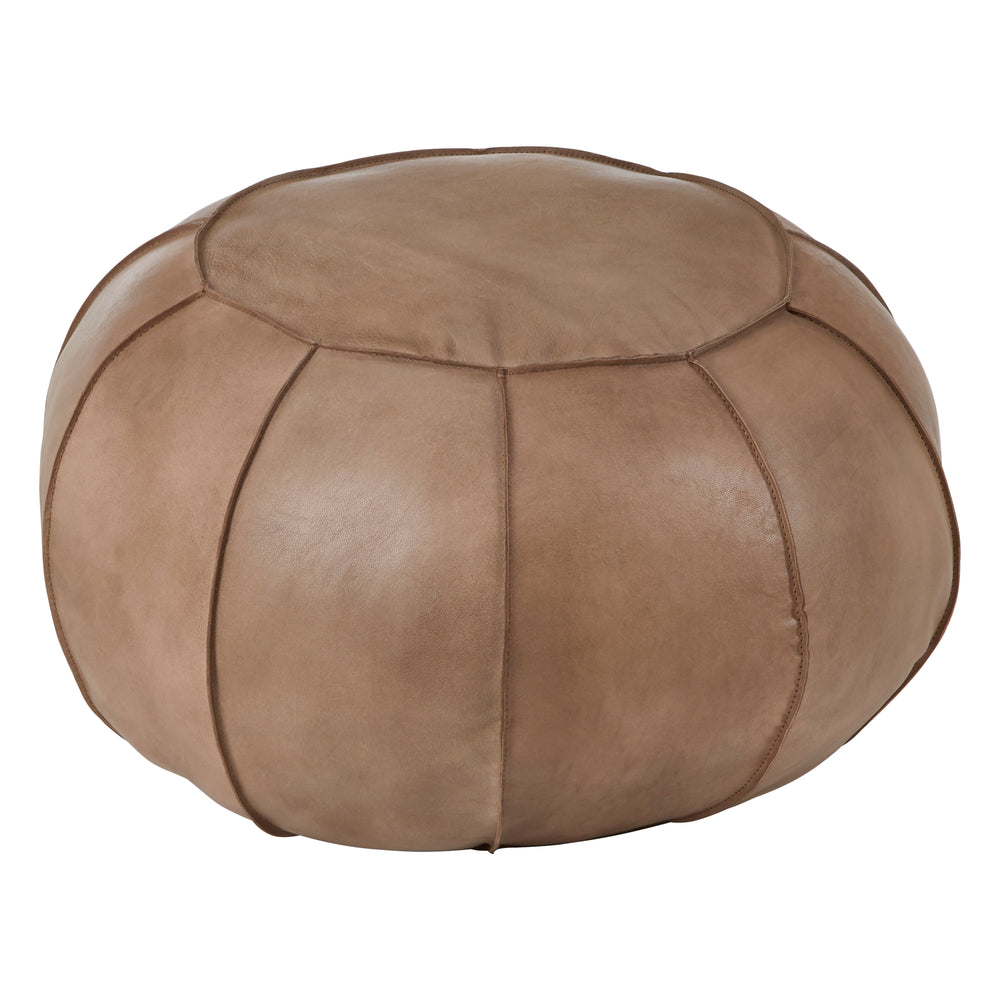 Crafted from soft leather, the Forge Tan Leather Pouffe makes it easy to add a sense of tactility to the living room. Bold piping travels down its sides to create a segmented look, adding texture to this soft and comfortable accent piece. Style it with a sofa or armchair from the natural leather Forge collection.