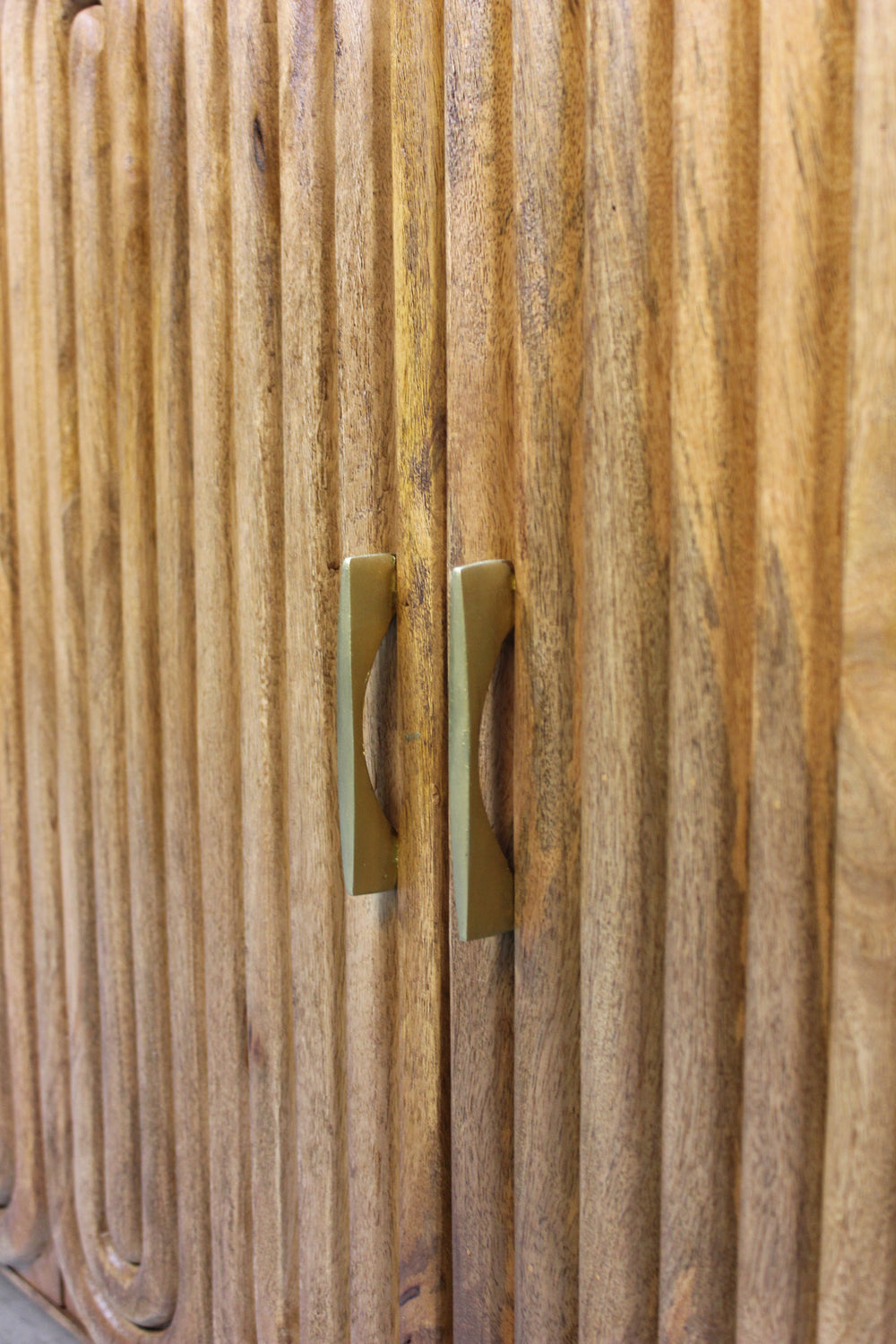 Crafted from solid mango wood, the Kasli sideboard showcases a smooth capsule-shaped design. Its curved form and natural textures bring a modern yet organic feel to any space, while offering generous storage behind clean, minimalist doors.