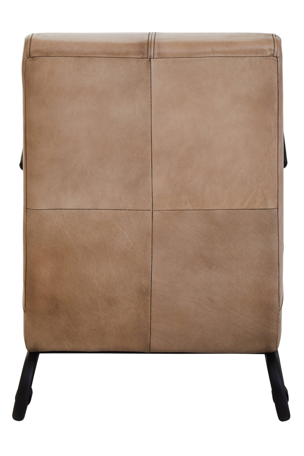 The Forge Tan Leather Armchair has a sleek black iron frame and an ergonomically designed backrest. Upholstered in genuine leather, this armchair features vertical channel detailing on the padded seat and backrest. The sturdy black iron frame adds to the sleek aesthetic of this accent armchair.