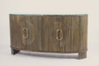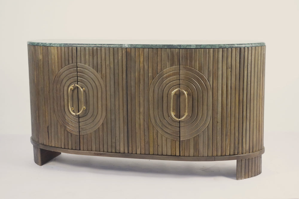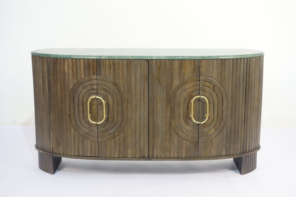 The Angari Sideboard features a bold, modern silhouette crafted from solid mango wood, topped with elegant marble for a refined contrast. Four doors provide ample concealed storage, making it a practical yet stylish addition to your home.