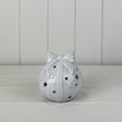 Glazed Ceramic Bauble with Bow Ornament with Textured Detail and LED (10.6cm)